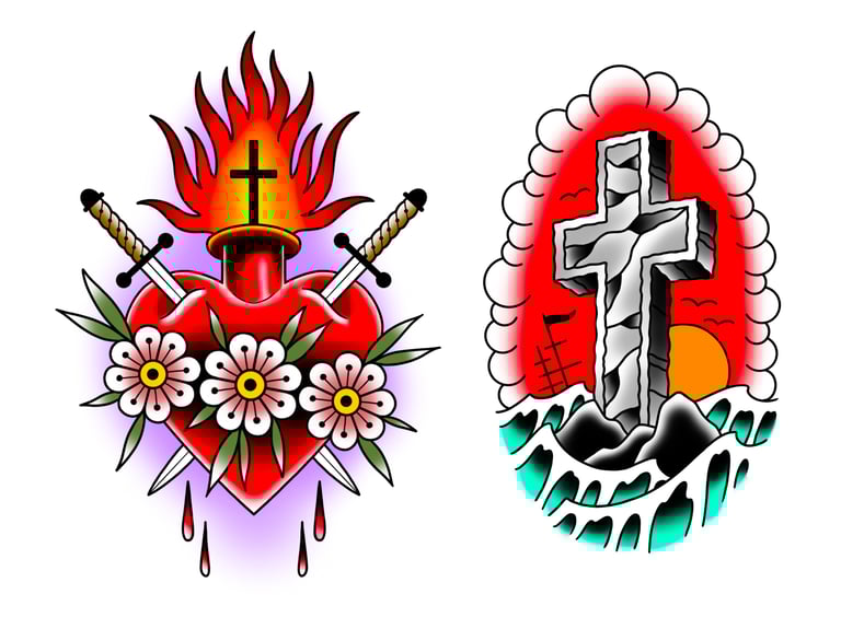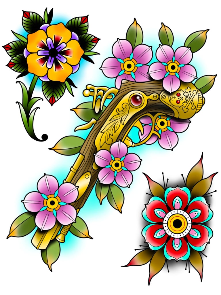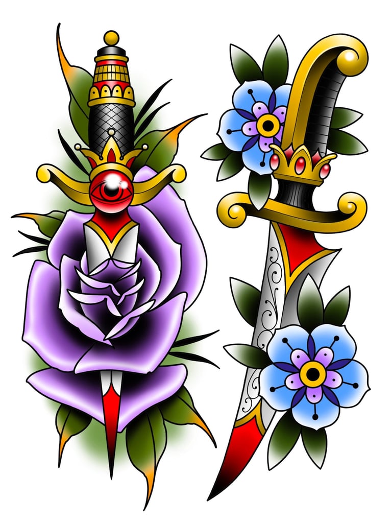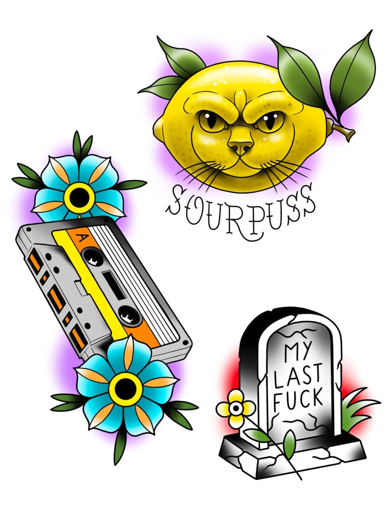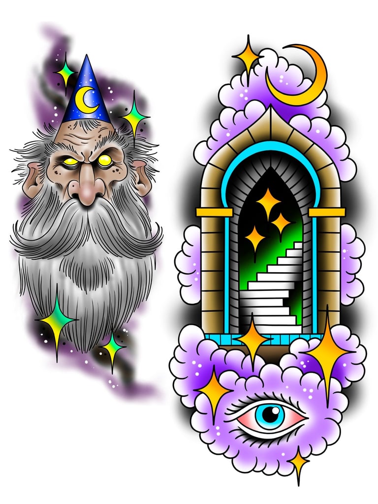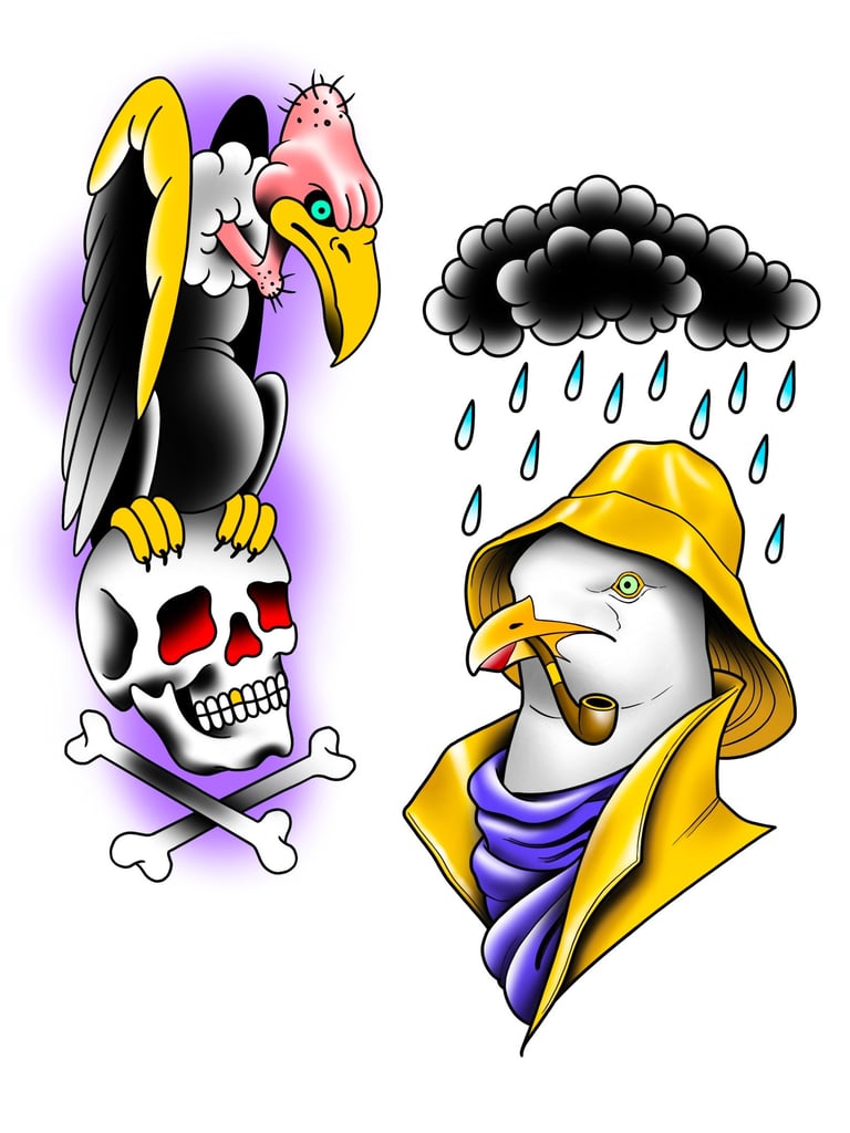 These are all drawings that I thought would make some fun tattoos. And to make it more fun I like to do these for a discounted rate. Everybody wins here.